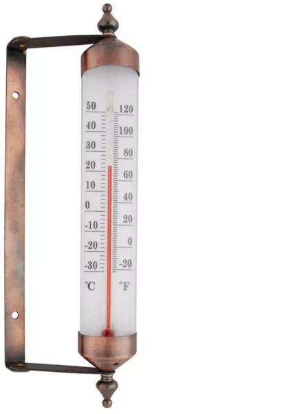 Ez az Esschert Design TH70 ablakhőmérő egyszerű módot kínál a melegház, a télikert vagy a nappali hőmérsékletének belülről történő ellenőrzésére. A bronz megjelenésű hőmérő könnyen rögzíthető a fal konzollal. A forgatható kialakítás biztosítja, hogy a hőmérő minden szögből olvasható legyen. A hőmérséklet - 30°C és 50°C között olvasható.